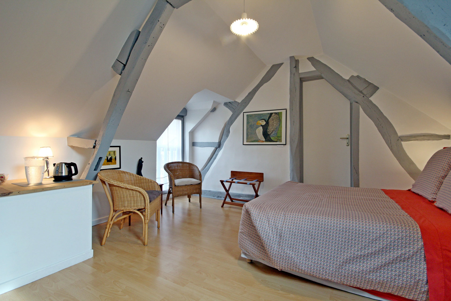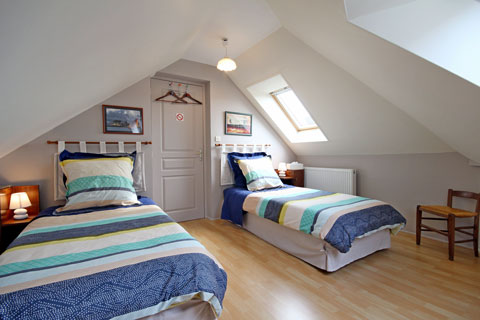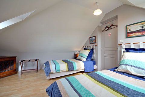 Je vous accueillerai dans ma maison où une suite composée de deux chambres sur le même palier vous est dédiée à l'étage, une première spacieuse avec un grand lit et une seconde avec deux lits jumeaux. Les sanitaires se situent au rez-de-chaussée donnant dans votre entrée privative.
